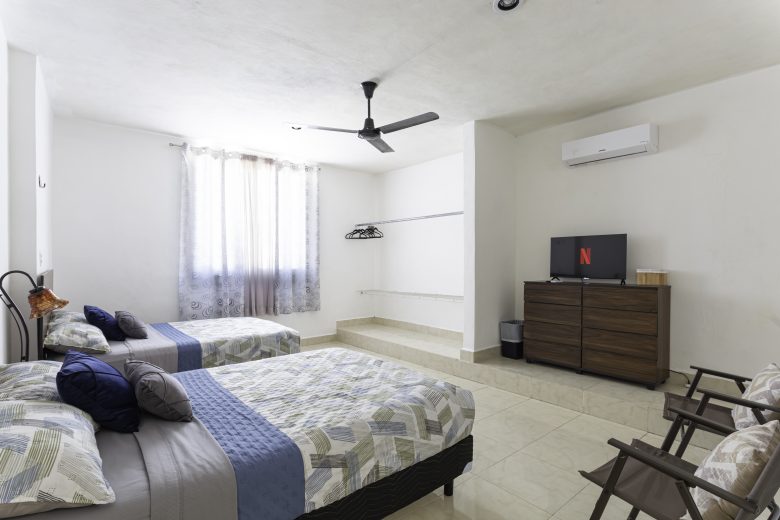 Disfruta Cancún desde este cómodo departamento, con aire acondicionado en todas las áreas, WiFi +300 MB y Smart TV. Relájate en la gran alberca o explora: estamos a un lado de Plazas Outlet, a 10 min caminando de Walmart y supermercados y a 15 min en autobús de la Zona Hotelera y playas.